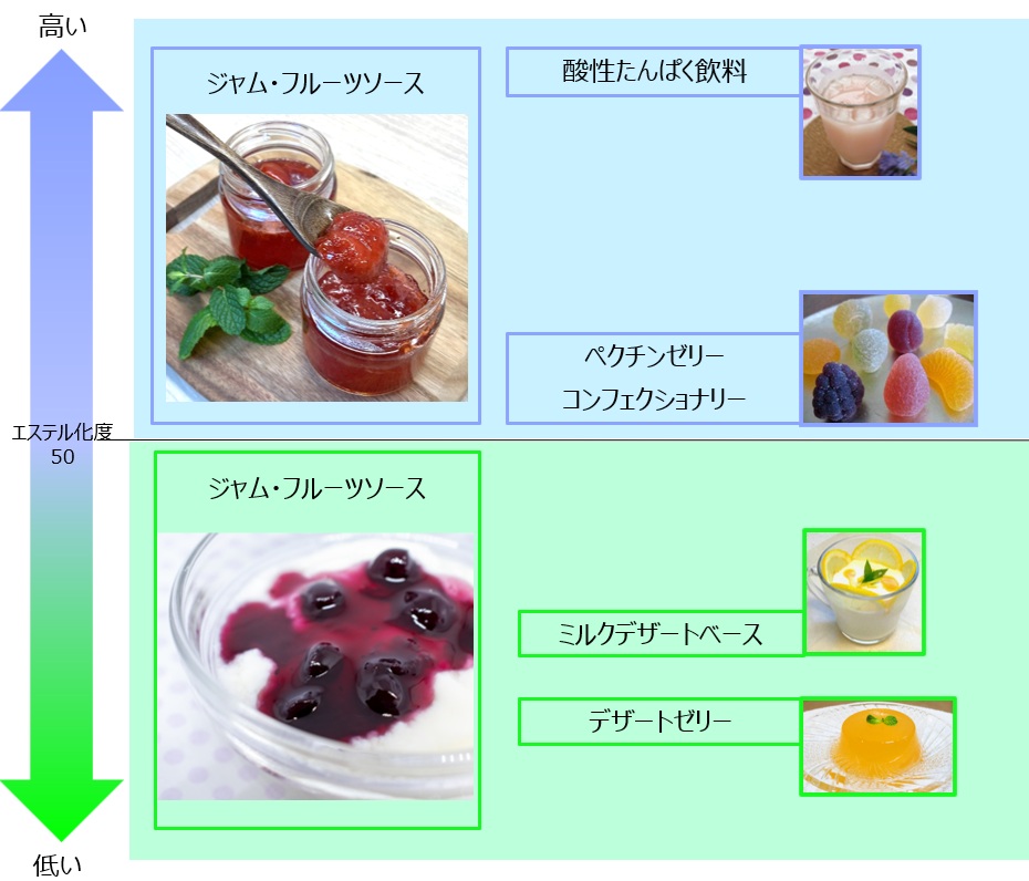 エステル化度の違いによって、ペクチンは性質が異なります。