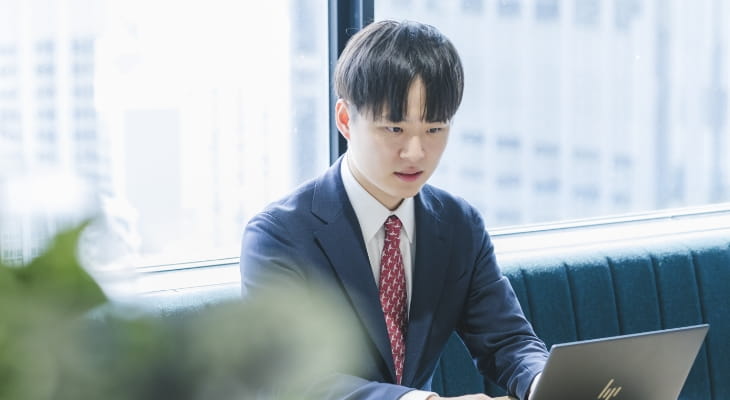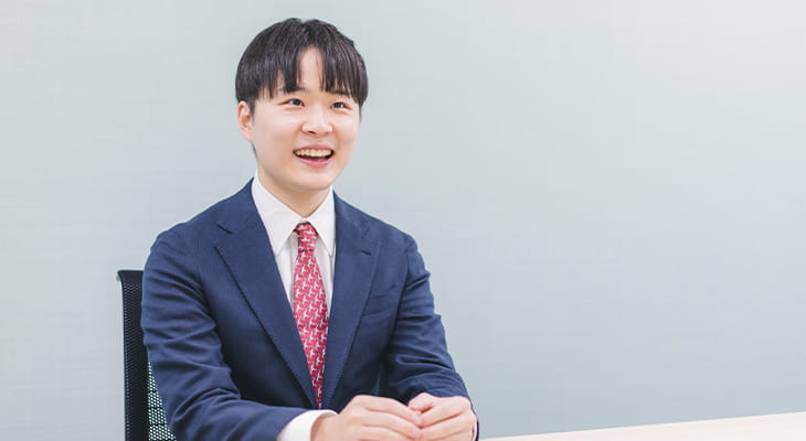 入社当初はお客様と話すのに緊張で汗だくになっていましたが、場数を重ねるうちに落ち着いて自然体で話せるようになってきました。今後は、先輩方に仕事を教わるだけでなく、社内で誰もしたことのない領域を見つけて、希少価値の高い仕事ができるようになりたいと考えています。その第一歩として進めたいのは、AIを使った業務の効率化です。まだ導入されていない分野のため、社内に新しい風を吹かせられたらと思っています。