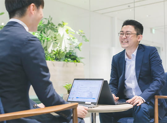 温かく面倒見の良い先輩たちとともに、若手のうちから積極的に意見提案できる環境です。所属部署を超え気軽に質問できるのも魅力です。自分たちでワークスタイルを決められるように、フリーアドレスを導入、自由に使えるカフェスペースやwebミーティング専用ブースを設置しております。